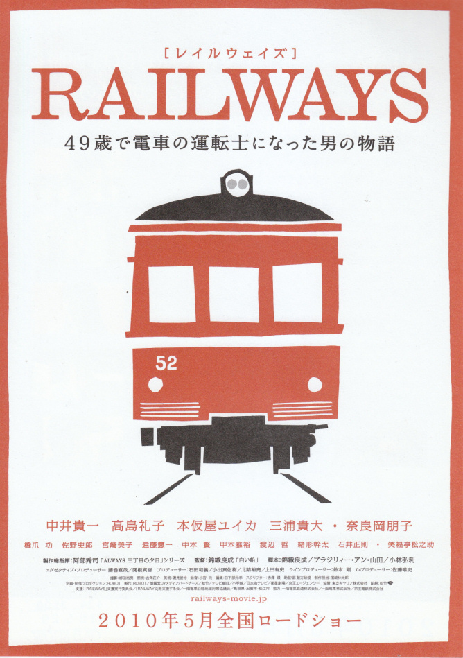 この映画の主人公は、親の病気や親友の死によって考えもしなかった(考えるのを拒否していた)人生の疑問に真っ正面から向き合い、49歳で子供の頃からの夢だった電車の運転手になる。